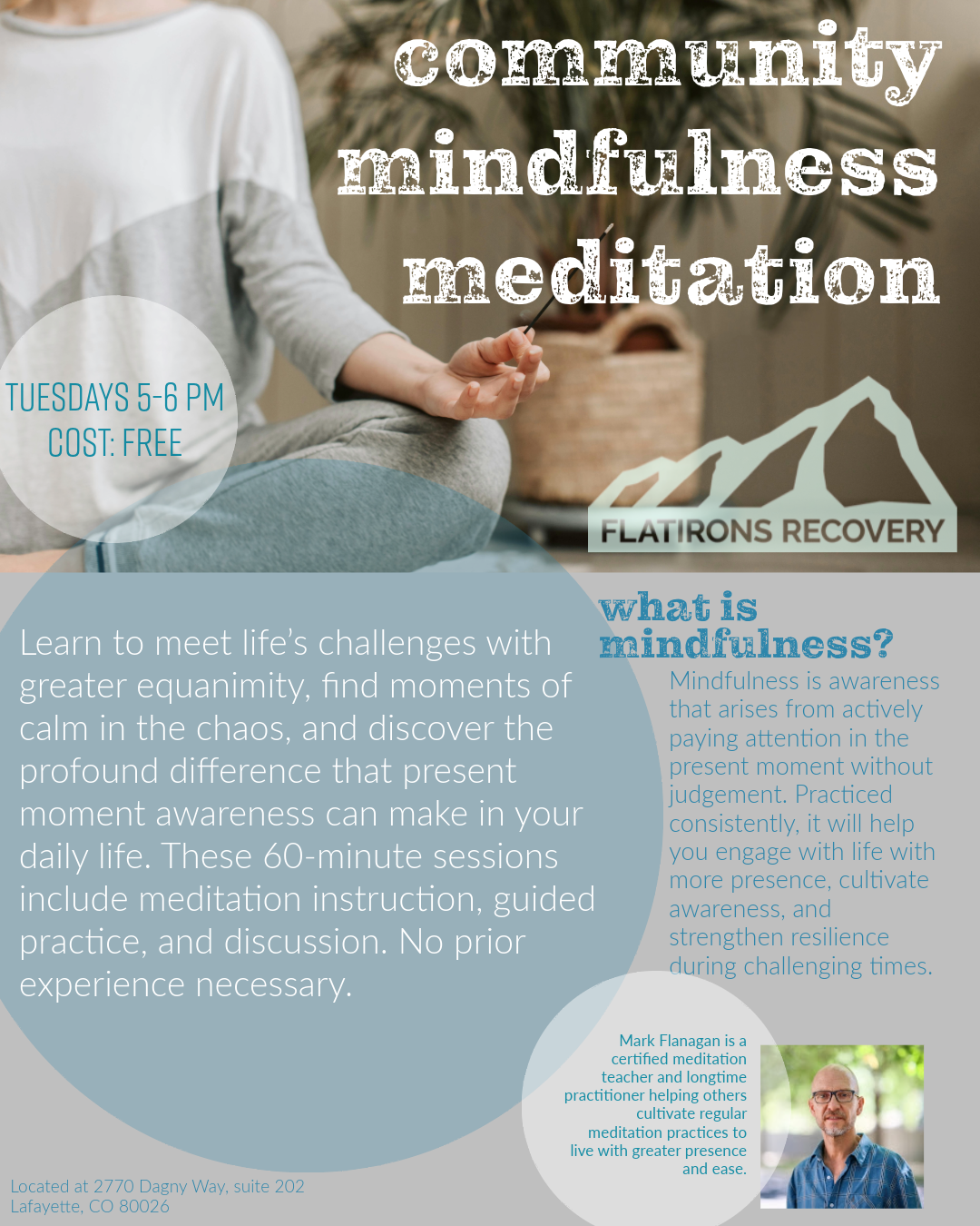 Being an active part of the recovery community in Boulder and the surrounding area is something we at Flatirons Recovery care about deeply, which is why we make it a priority to offer events that are open not just to our clients, but to anyone who may benefit in the Boulder area and beyond. Our events include educational classes and workshops, alumni gatherings, professional development opportunities and more! Many of our events are virtual and therefore accessible to those outside of Colorado.